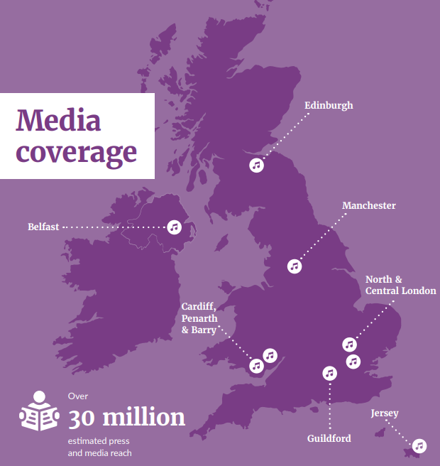 Invested in a new stories and media role so we share authentic stories and experiences to engage more people in the power of live music. This has resulted in press coverage across England, Wales and Scotland, with a press release conversion of 50%.