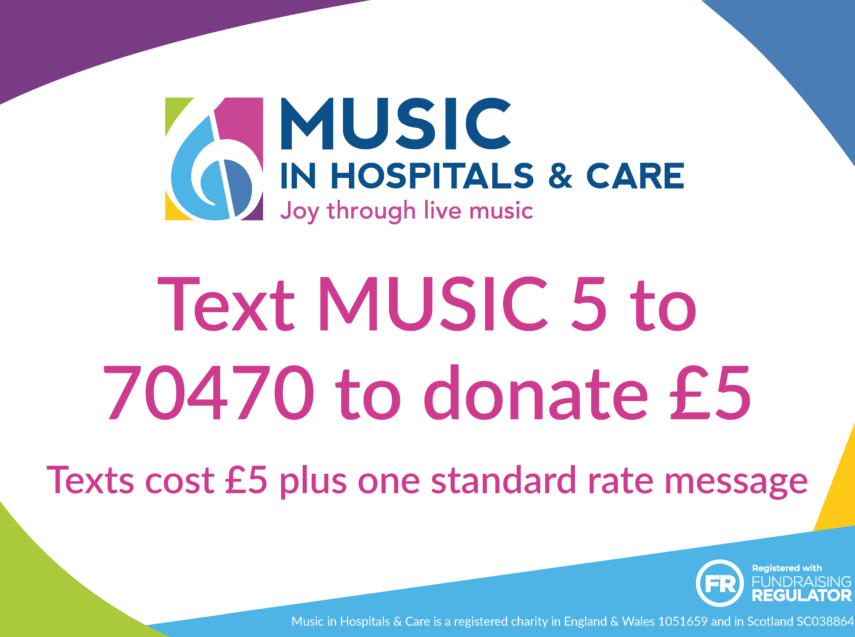 Please give today to help improve the health and wellbeing of children and adults through the healing power of live music.