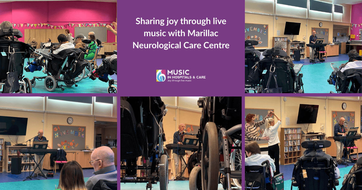 Music in Hospitals & Care is sharing joy through live music with residents and staff at Marillac Neurological Care Centre for adults with complex neurological conditions, including stroke and acquired brain injury.