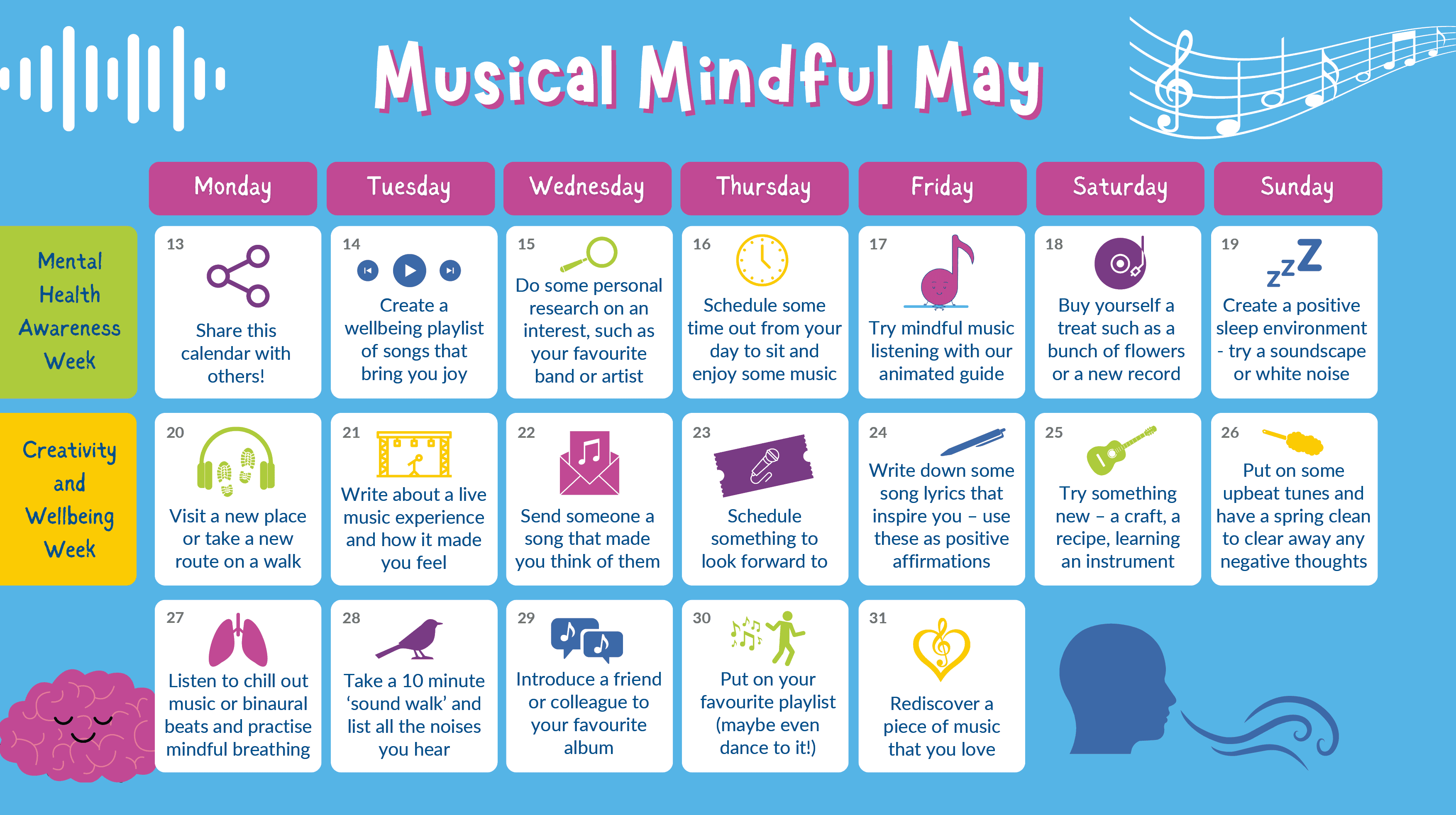 This Mental Health AwarenessWeek we have created a new calendar to take you through the rest of May in a musical and mindful way ??
