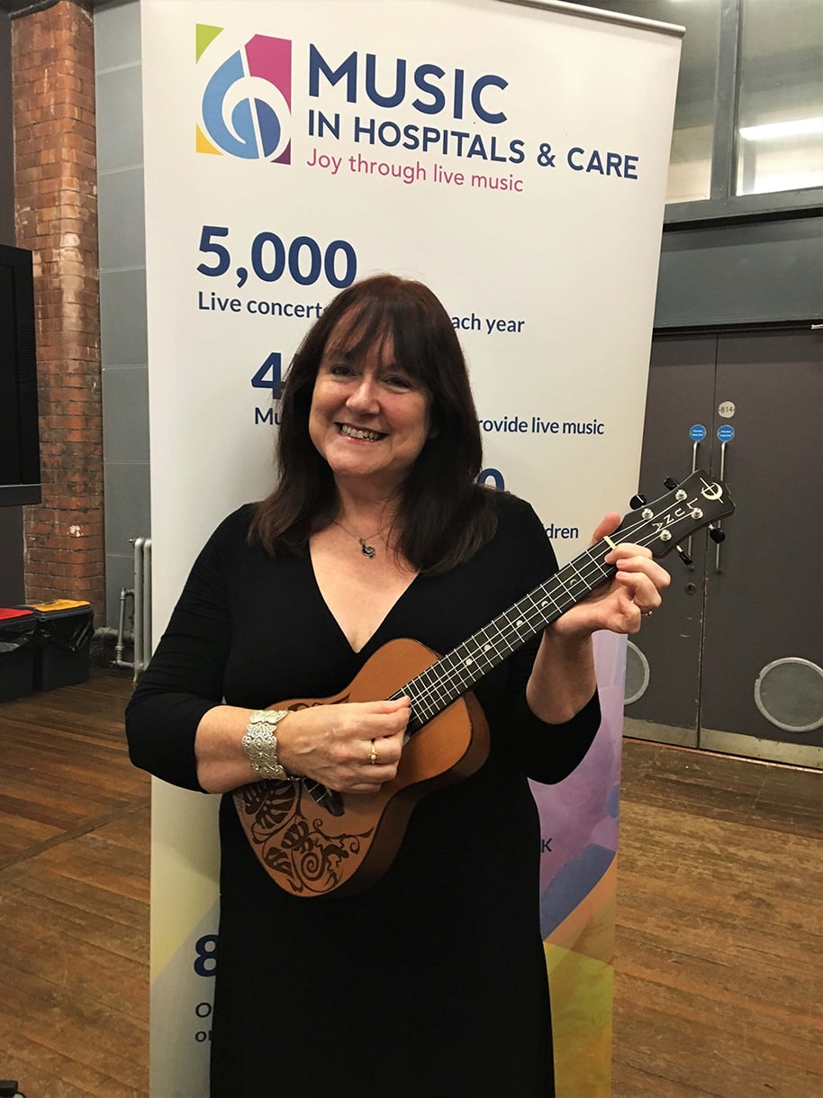 Mezzo-Soprano Lyn O’Hara has been working with Music in Hospitals & Care in the North of England since 2013, performing nearly 200 concerts and music sessions for the charity. Her musical delivery is warm, inclusive and fun, drawing people in both with her beautiful voice and good humour. Her wide repertoire includes songs from the shows and silver screen, plus well known songs like Scarborough Fayre and Dance to your Daddy, which are a real hit with people living with dementia as well as long term patients on a variety of hospital wards.