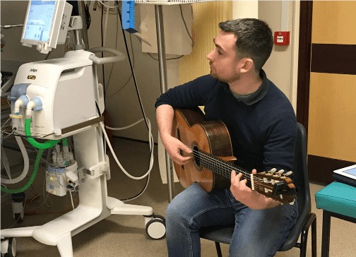 Will Browne is a guitarist who has been working with MiHC in South Wales since 2014. He performs relaxing renditions of popular songs such as ‘Somewhere Over the Rainbow’ and ‘Fly Me to the Moon’ in range of settings including our ICU Hear® sessions on critical care wards.