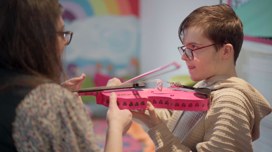 Since 2023, professional musicians from Music in Hospitals & Care have been sharing live music with Carmarthen Breakthro’, a charity supporting children aged 4-18 with physical and learning disabilities in Carmarthenshire.