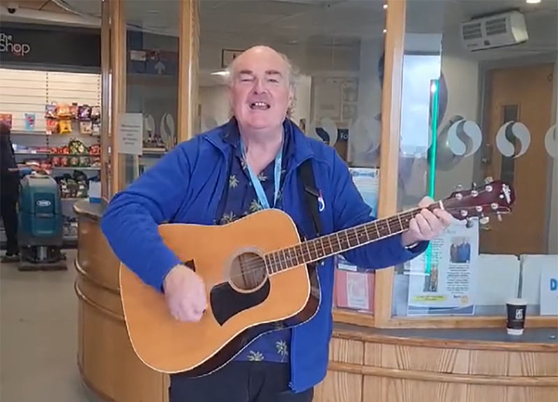Singer and guitarist Bernie Fawcett has been working with us in the North of England and North Wales since 2015. Bernie began his musical career playing at weddings, wine bars and on cruise ships, and has found sharing live music with hospital patients and care home residents rewarding and a great way to communicate with people.