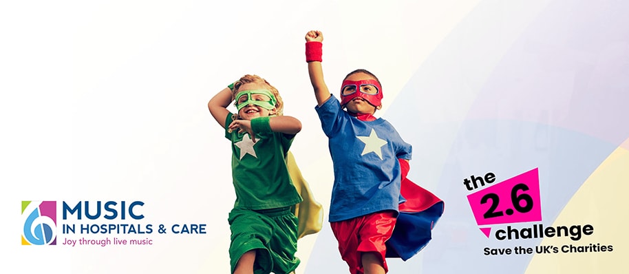 • Join us on Sunday 26th April (the original date of the 40th London Marathon) on our Facebook page as we take on our #TwoPointSixChallenge Music Marathon – 26 musicians each playing 26 minute sets from their homes. Expect Music in Hospitals & Care favourites plus some special guests. You can find the full line up and set times on the Facebook event.